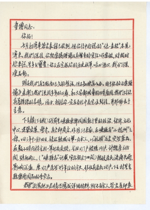 现在我们有个酝酿已久的想法,但不知该怎么办。由于你的《索赔论》启开了我们关闭多年的心扉,和大家都姓童的双重原因,我们对你有着特殊的感情。因此,相信你一定在百忙中看完这封信,并帮助出个主意。