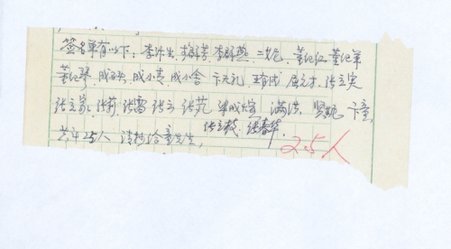 There are signatures from a total of 25 people, including Li Biansheng, Li Qunfang, Li Qunzhi, Li Qunyan, Er Ni, Dong Jihong, Dong Jijun, Dong Jiqun, Cheng Shitou, Cheng Xiaoqing, Cheng Xiaoshe, Bian Tianli, Wang Youde, Qu Yuancai, Zhang Lifu, Zhang Lijia, Zhang Li, Zhang Lei, Zhang Yun, Zhang Lan, Liang Chengxuan, Zhang Lizhi, Zhang Chunhua, Man Hong, Xian Ni and Bian Tong