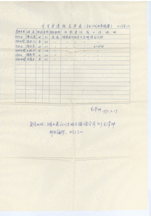 向日本政府要求受害赔偿的签名表 共2页第1页