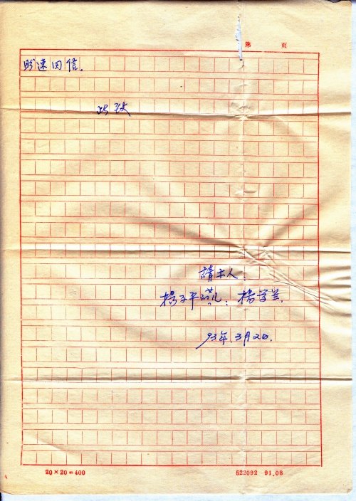 写信日期:1993-03-02
