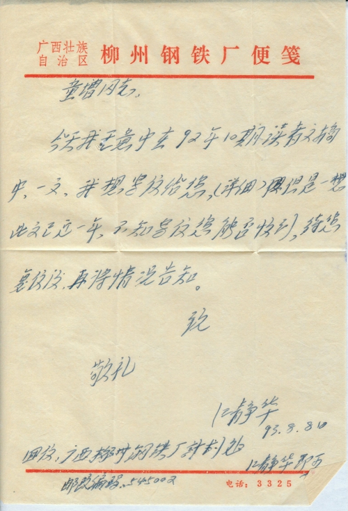 今天我无意中在92年10期读者文摘中,一文,我向写信给您,(详细)但是一想此文已近一年,不知写信您能否收到,待您复信后,再将情况告知。