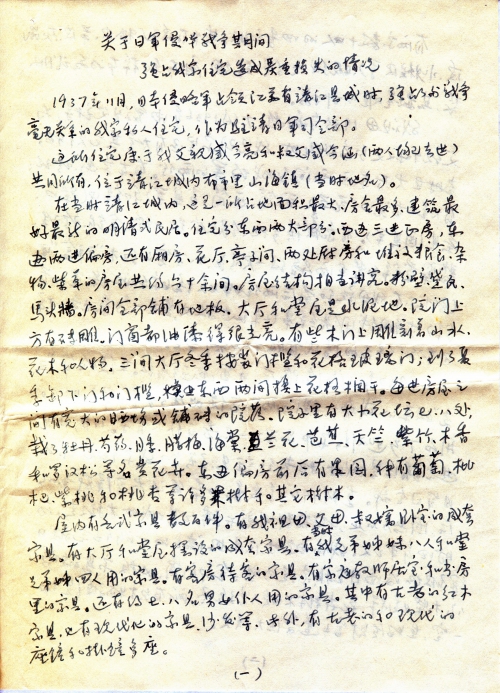 关于日军侵华战争期间强占我家住宅造成严重损失的情况