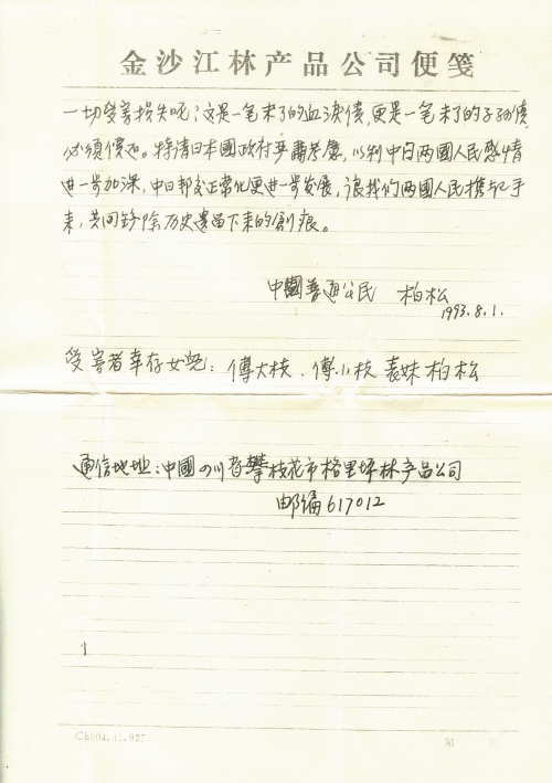 一切受害损失呢?这是一笔未了的血泪债,更是一笔未了的子孙债,必须偿还。特请日本国政府严肃考虑,以利中日两国人民感情进一步加深,中日邦交正常化更进一步发展,让我们两国人民携起手来,共同铲除历史遗留下来的创痕。