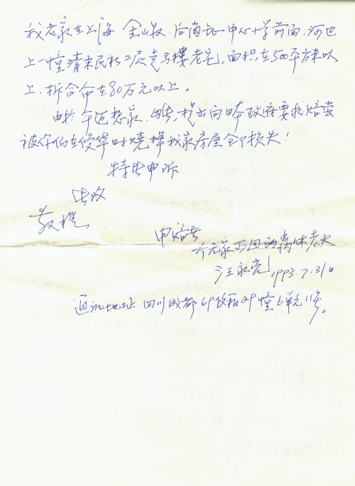细节:童增先生,谢谢你的关心,现将我写给日本大使馆的信,寄给你。我在上海的房屋1938年至1939年被日军轰炸,中日建交应该合理还债。
