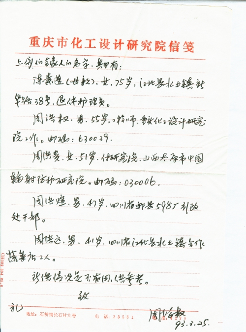 写信人:周洪(鸿)权