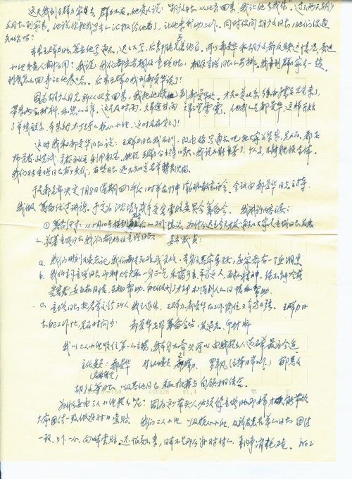 我所以写这些让北京方面有所谅解,同时也知道我们这里的具体困难,有机会为了小组团结,我还可以找王群力交流意见。既然多人之托,一定做到底,尽量做好。三人小组,核心小组,以及全体同志,我绝对保留发言权。如果谁想排挤我(但愿没有现象),我主动找他们取得他们领导和他们一道工作。我是受童增同志大公无私的委托,我也一定大公无私的去做。对单线联系或往来的消息最少要在三人小组研究,有时间在核心小组研究,或全体会上研究。我们相信北京各位领导,更相信童增同志,因为名单是童增同志寄来的,受童增同志的委托,目前只有名单是书面的,我们三人小组是基本形式,除非有一天有书面材料撤销这个名单。因为这些人都是童增同志发展的,虽然现有批准,但童增同志不是照样发展了这些人吗,我们也像童增同志那样去发展。我还保留我向童增的书面汇报权。