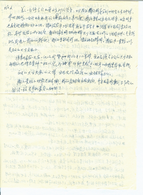 昨天寄去挂号信想已收到。但有些事情言犹未了。一说为快!您是我最值得信赖的同志,值得尊敬的同志。我们萍水相逢,一见如故,是对日索赔使我们走在一起了!当读到“讨公道”文章后,您正义的义举,48年来梦寐以求的对日索赔,苦无门路的时候,拨云见日。北京会晤后您那一身正气,大义凛然,成名之后仍然谦虚谨慎,和蔼可亲,平易近人,那样耐心,确实是文如其人。等到接到寄来名单后,您的伟大人格使我确信无疑,您信守诺言。1931年9.18事变后至1945年日本投降止,日本侵华期间,死难者、受难者本人及其家属子女、没有门第之见、社会地位、职位高低的世俗之见。我对您的褒词绝非奉承,绝无攀龙附凤,捞取什么好处,只求像您那样,勤勤恳恳,任劳任怨,为索赔劳苦大众服务。给我们三人寄来名单,又把我列在第一位,感谢您对我们的信任,也加重了我们的责任感。我们也想像您那样做好这项工作。