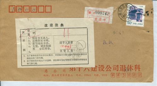 回信请寄:443000 鄂 宜昌市管盘路2号