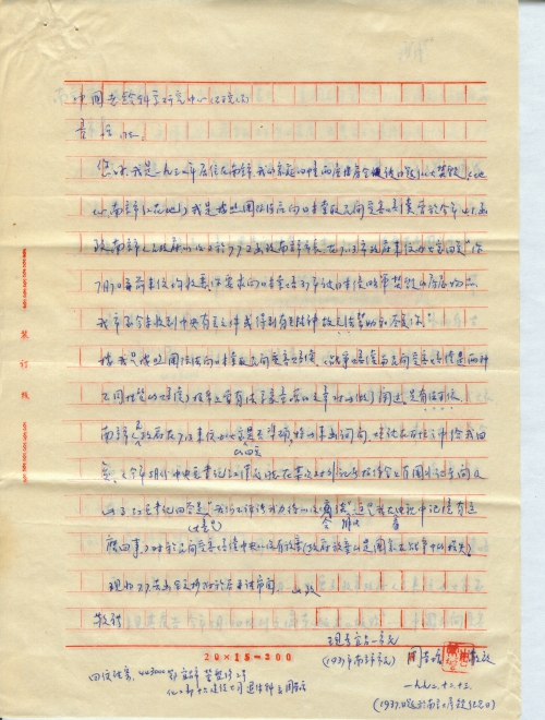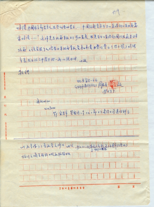此函系按7.7原函原文抄出。此信,1992.12.13(南京于1937日寇大屠杀五十五周年纪念日)