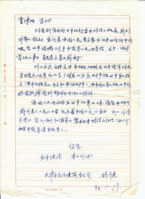 您向人大向社会及日本政界的上书,请愿和呼吁都代表了人民的心愿,反应了中国人民的意志,所以我请求参加您所领导和倡导的要求日本赔偿的组织!如何办理手续等请来信告之。