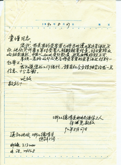 我县有的受害者已将当时遭日军迫害经过写好,他们哭诉着日军对受害人残酷杀害情景,对日索赔反响相当强烈。中国人如此受到欺凌,这笔血账非算不可。
