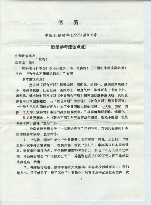 当代德宏地方政要,对“联合声明”伏笔精神,保留民间受害对日索赔权,不理解,不同情,不支持,不关怀,大乱了方寸,认识偏激有之,倾斜“友好”,淡化民间受害对日索赔血债,倾向极端!