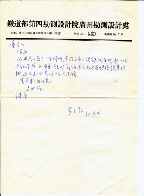 I have written an article earlier and sent it to the Political Office of the Japanese Embassy. I am now sending a copy of it to you. You may read it at your leisure. I am still working on collecting materials, documents and proofs and will mail them to the Japanese Embassy.