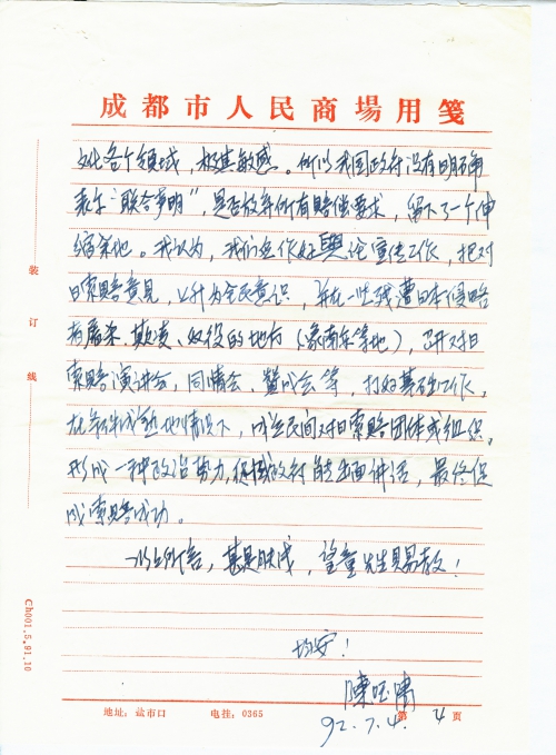 写信日期:1992-07-04