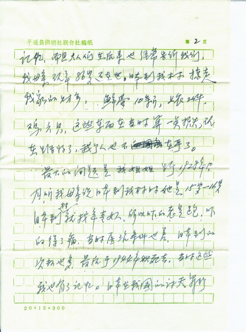 最大的问题是我姐姐生于1928年10月,听我母亲说日本到我村时,她是15岁—16岁,日本到村就找年轻女人,所以吓的老是跑,吓的得了病,当时医治条件也差,日本到的次数也多,最后于1944年秋死去,当时这些我也有了记忆。日本在我国的[滔]天罪行,在后来上了学校就更知道的多了。