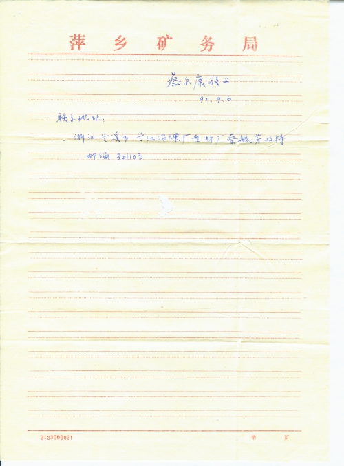 我是浙江兰溪人,现年七十二岁,江西萍乡矿务局退休干部,高级会计师,历任萍乡市一至六届政协委员。在抗日战争前,我父蔡丽生经营纸业,家属小康,抗战时期,我兄蔡尔音(家名时能)继承父业,扩大经营,开设大有恒纸庄。一九三八年兰溪被炸,这时纸庄销售待运纸张两船,全部被毁,损失约值银元六千余元,从此我家经济陷于困境,全家衣食不继,痛苦不堪,这受害损失,理应由日本赔偿。为此特函。