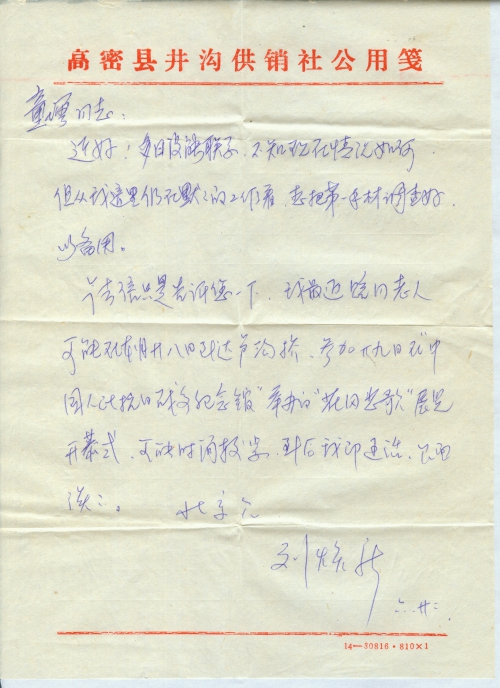 今去信只是告诉您一下,我最近陪同老人,可能在本月二十八到达卢沟桥,参加二十九日在“中国人民抗日战争纪念馆”举办的“花冈悲歌”展览开幕式,可能时间较紧,到后我即通话,见面谈。