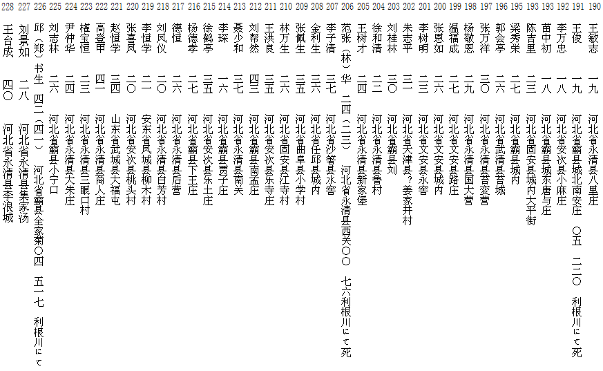 連行された中国人の名簿
