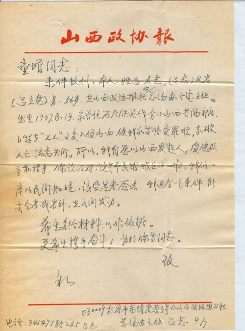 来件收到。本人:姓吕,名志(吕志)又名(吕立尧),男,56岁,在山西政协报社任总编办公室主任。出生1937.8.13,家曾住石太铁路线旁的山西共阳新庄。日寇在“七七”事变入侵山西,使我家庭倍受罪难,家破人亡,流离失所。所以,我自愿以山西发起人,受您领导和指导,你说的对,这是个长期、艰巨的工作,我们一定以民间知晓,让受害者签名。我还有一个条件,能去全省或省外,在民间发动。