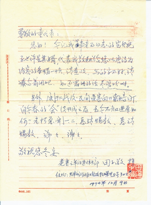 细节:对日索赔近况如何?另外随信提供了几位难友的通讯地址。
