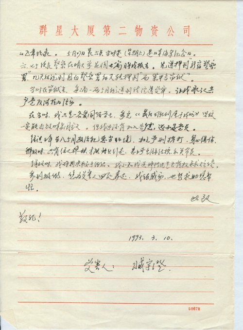 写信日期:1993-03-10