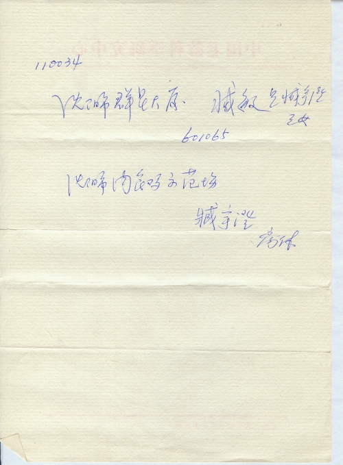 写信人:臧宇澄