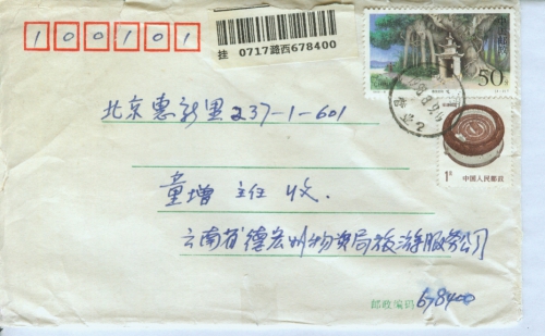 若回信请寄:云南省,德宏州物资局旅游服务公司杜云转