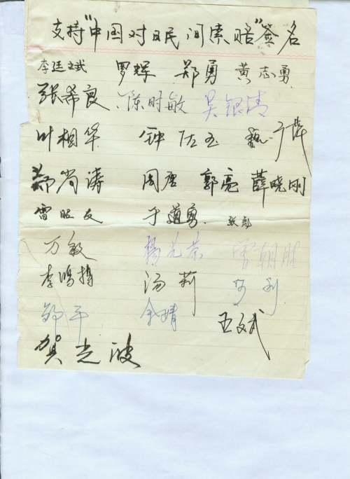 细节:安富中学高中学生支持对日索赔,寄来签名。