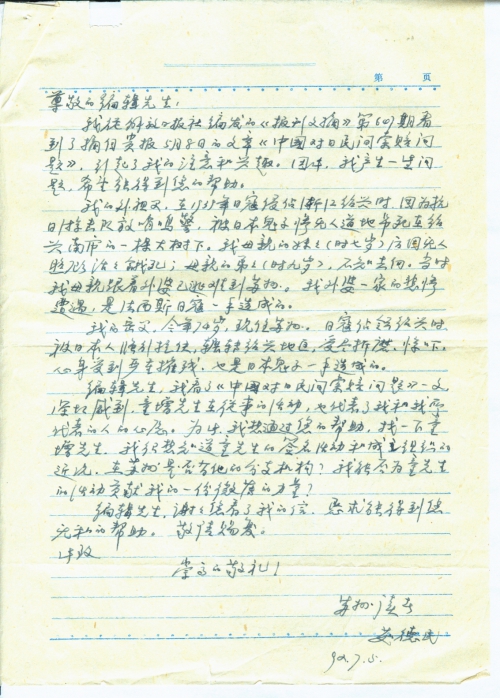写信日期:1992-07-05