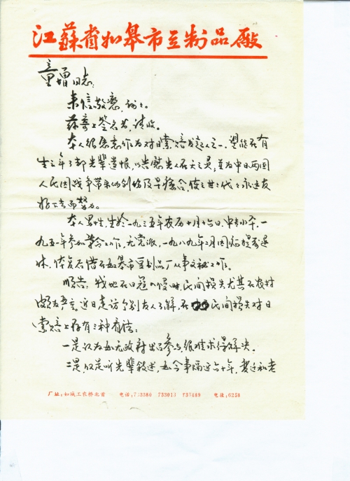 本人男性,生于一九三五年农历十月十六日,中专水平,一九五一年参加革命工作,无党派,一九八九年二月因病提前退休,体复后借在如皋市豆制品厂从事文秘工作。