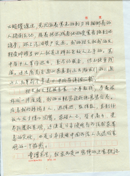 祖父和父亲被杀害,小弟致残,房屋被炸成一片废墟,我的母亲悲痛欲绝悬梁自尽。后来我们姐妹五人,逃的逃,散的散,直到解放以后才得以团聚。家破人亡,背井离乡,受尽折磨和苦难,这便是日本侵略者所给我家带来的灾难,也是日本侵略中国所给人民造成苦难的一个缩影。