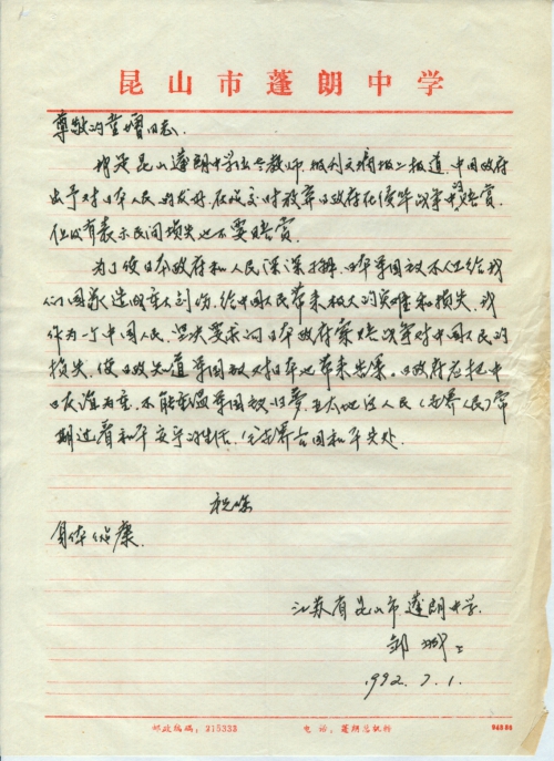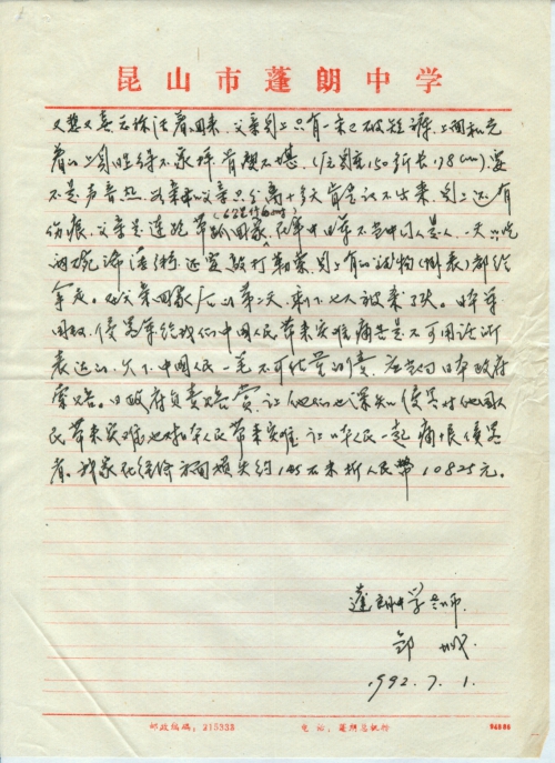 写信日期:1992-07-01