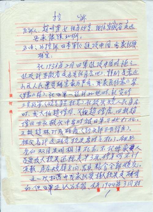 事由:为控诉日本军队进攻中国,我家所受残害: