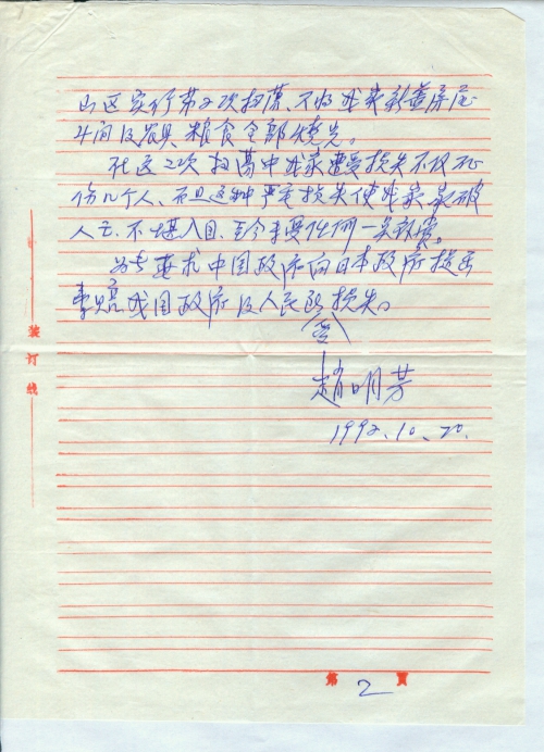 细节:1938年2月日军火烧我家房屋,我父亲赵增虎、四叔赵增田被日军开枪打死,五叔赵林被打残,1944年我家房屋再次遭日军烧毁。