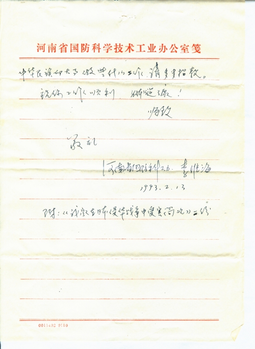 写信日期:1993-02-13