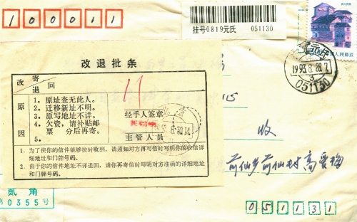 写信日期:1993-08-28(信封日期)