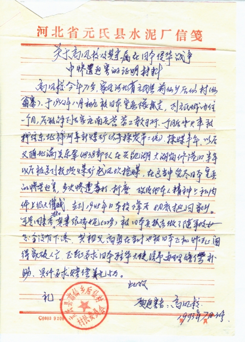 关于高风校及其亲属在日本侵华战争中惨遭迫害的证明材料