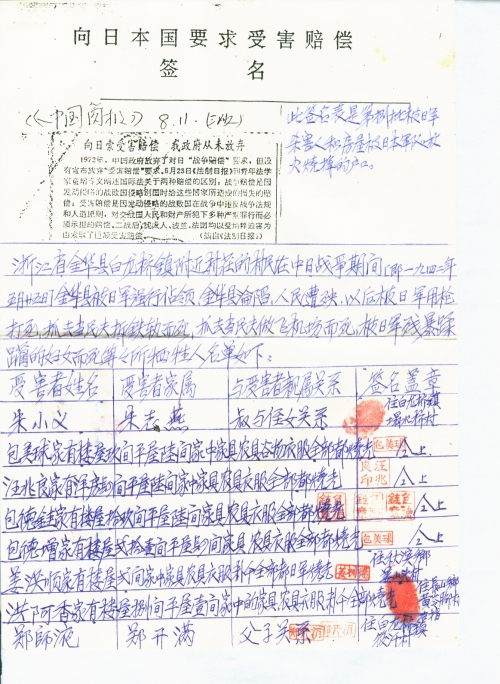 此签名表是第八批被日军杀害人和房屋被日本军队放火烧掉的户口。