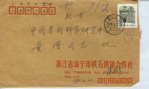 写信地址:浙江省海宁市