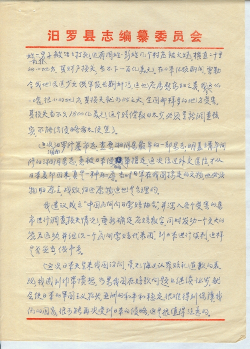 I suggest we should establish a civil association to claim for compensation against Japan and investigate the losses in each place suffered in the war to re-determine the amount of compensation. Meanwhile, we should launch a bigger signature program and organize a civil representative group, which will go to China to negotiate about the compensation. The suggestions are only for your reference.