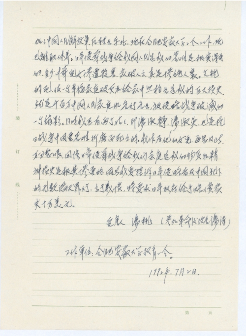 对你们的美德万分感谢,由于父亲受害时我年龄小,对一些情况不怎样清楚,便请叔叔写了一些情况,我腾写了一下,现寄上,烦你们代劳给童增、不知这样写不行。