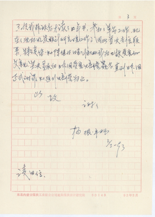 写信日期:1993-03-03