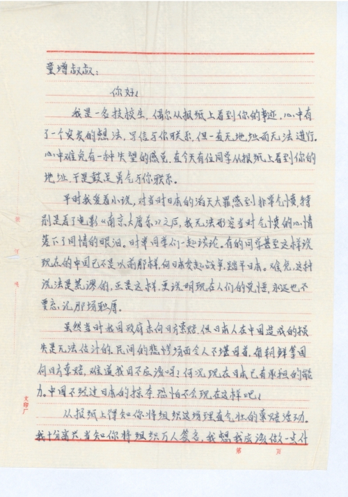 早时我爱看小说,对当时日本的滔天大罪感到非常气愤,特别是看了电影《南京大屠杀》之后,我无法形容当时气愤的心情,落下了同情的眼泪。时常同学们一起谈论。有的同学甚至这样说,现在的中国已不是以前那样,向日本发起战争,踏平日本。难免,这种说法是荒谬的,正是这样,更说明现在人们的觉悟,永远也不要忘记那场耻辱。