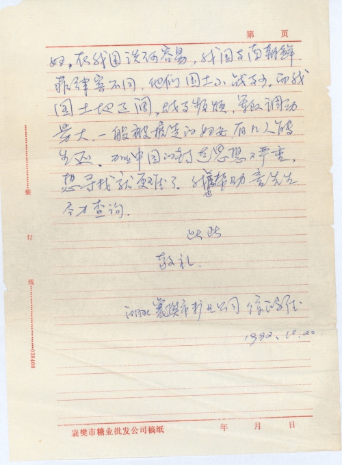 写信日期:1992-10-20