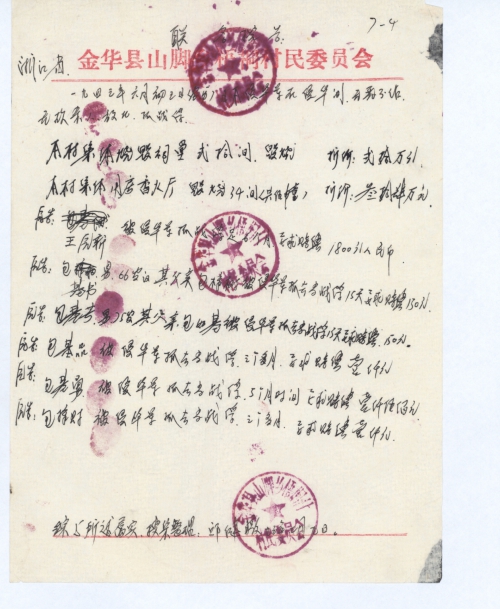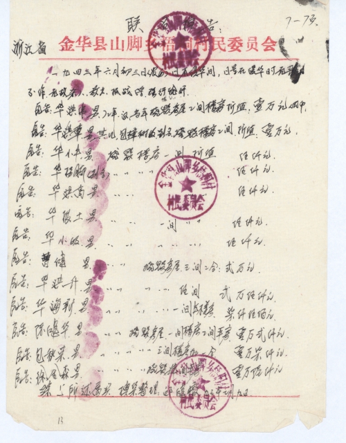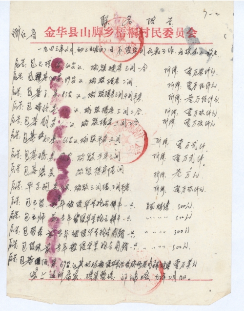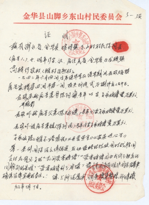 Zhejiang Province Jinhua County Shanjiao Town Dongshan Villagers Committee (Seal of Villagers Committee)