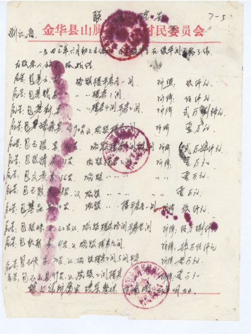Zhejiang Province Jinhua County Bailongqiao Town Sanlian Villagers Committee (Shangpanjia Natural Village) (Seal of Villagers Committee)