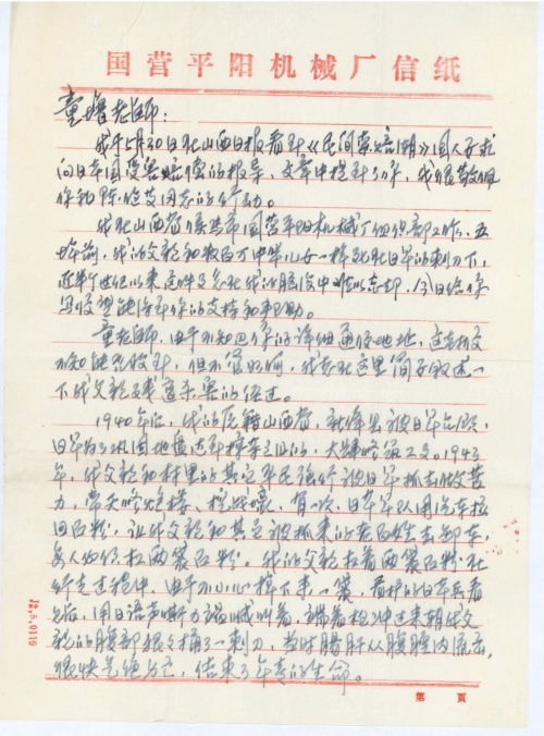 我在山西省侯马市国营平阳机械厂组织部工作,五十年前,我的父亲和数百万中华儿女一样死在日军的刺刀下,近半个世纪以来,这件事总在我的脑海中难以忘却。今日给你写信望能收到您的支持和帮助。