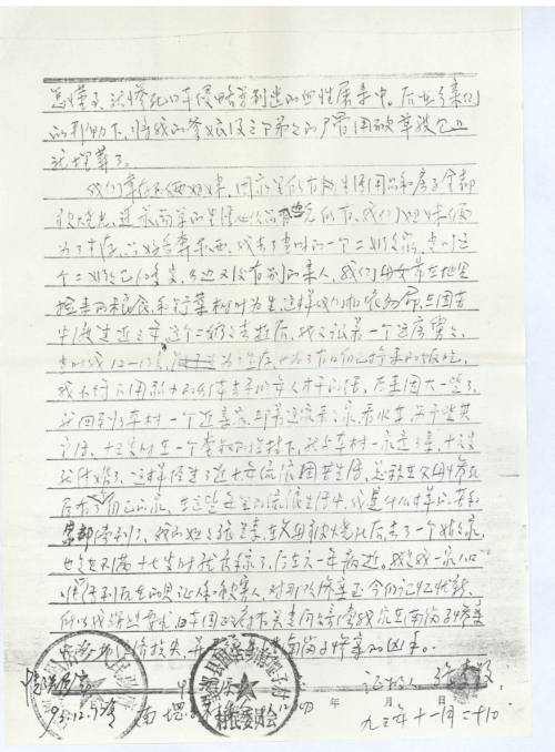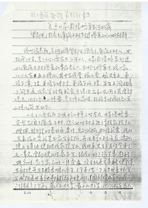 细节:1938年日本侵略者在我的家乡制造惨案我是幸存者之一,家里一共8口人其中5口人惨死在日本人的手里,家中的房屋,粮食,生活用品,农用工具等全部烧毁。备注信封丢失