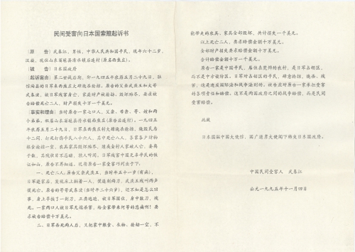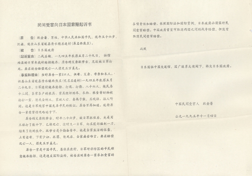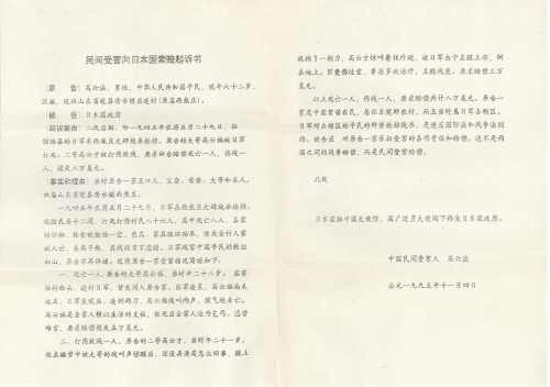 民间受害向日本国索赔起诉书