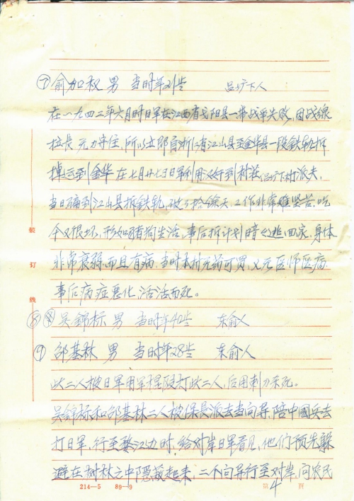 ④ 唐金实 男 当时年32岁 住秋滨乡蒋马山背村